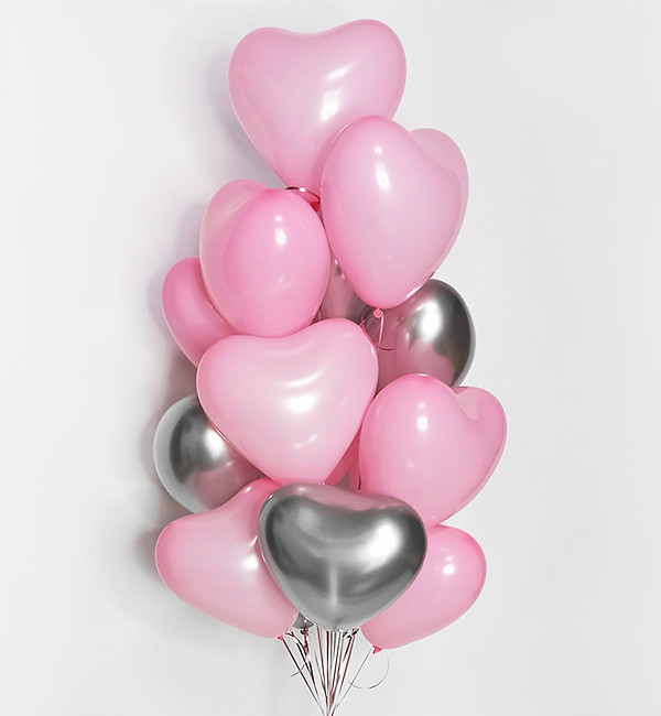 - Серце латексне 30 см - срібло хром 4 шт, рожевий пастель 8 шт;